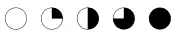 | ◑ | Astronomy: (Last quarter moon); electronics: (on/off switch, television contrast) |