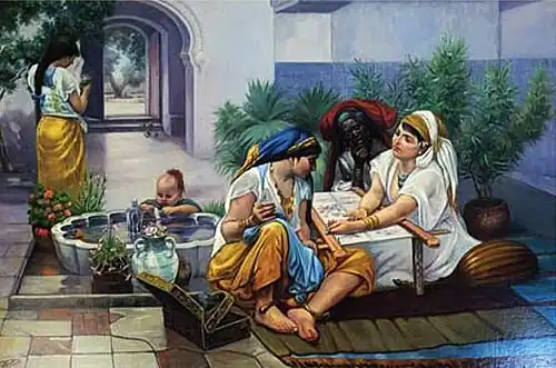 Thinking about his wartime friend, he went to Italy. He spent twelve years there; visiting museums and workshops in Rome, Florence and Naples. He then spent some time studying historical artifacts in Egypt. Upon returning, he received an offer to be reinstated in his former rank, but he refused, choosing instead to open his own workshop in Edirne.[1] There, he created portraits and historical scenes, mostly from major wars fought by the early Ottoman Empire. In each of those scenes, he would include a small portrait of himself, as a Janissary or official of some sort.[2]