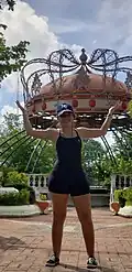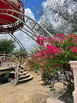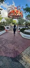 Central park of Hato Mayor. The local Roman Catholic parish can be seen behind the roundabout.