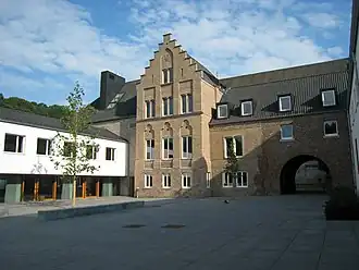 In 1954, that organisation returned to the restored Jugendhaus Düsseldorf. Haus Altenberg has been a house for young people of the Diocese of Cologne, hosting both events of the diocese as more general conferences and educational events. From 1976, the buildings were restored and expanded, designed by Paul Georg Hopmann.[2] From 2013, the buildings were adjusted to meet demands for fire protection and energy preservation. They are barrier-free while the historic exterior was kept.[2][3][4] It was reopened on 14 August 2016.[5]