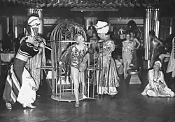 The ballroom, also called the Palmensaal (palm room) was under the dome, and intended as a re-creation of the Garden of Eden.[52] The Palmensaal had a dance floor mounted on springs to prevent fatigue. It was considered the most beautiful ballroom in Berlin, and attracted up to a million visitors a year.[53] It was decorated with silver palm fronds and sculptures by Josef Thorak, who was to be popular during the Nazi era.[5] Jazzmeister Bill Bartholomew led the house dance band[28] and the "Vaterland-Girls" performed.[34]