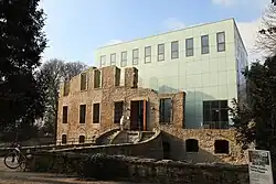 On the initiative of Alexander von Berswordt-Wallrabe, Situation Kunst (for Max Imdahl), a contemporary art collection with sculptures and paintings, was created in the park of Haus Weitmar starting in the late 1980s, which he donated to the art collection of the Ruhr University Bochum in 1990. The collection was created in memory of the art historian Max Imdahl, who became the first holder of the Chair of Art History at Bochum University in 1965. A building was completed for Situation Kunst in May 2010 as part of the Ruhr.2010, providing around 1,200 square meters of space for cultural and scientific events, exhibitions, and storage and workrooms.[20] The building, called Kubus, was built according to designs by the architects Pfeiffer, Ellermann and Preckel from Münster[17] and built into the Weitmar manor house ruins. In the course of its completion, the estate's old moat was refilled with water. On 13 November 2015 an underground extension of the Situation Kunst opened with the Museum unter Tage (MuT).[21]