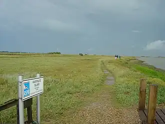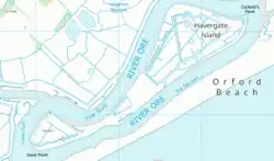 Havergate Island, together with the National Trust managed Orford Ness site is a designated national nature reserve.[7] The island is also included in the Alde-Ore Estuary Site of Special Scientific Interest (SSSI);[8] the Alde, Ore & Butley Estuaries Special Area of Conservation (SAC);[9] the Alde-Ore Estuary Special Protection Area (SPA);[10] the Alde-Ore Estuary Ramsar Site site;[11] the Suffolk Coast and Heaths Area of Outstanding Natural Beauty (AONB);[12] and the Suffolk Heritage Coast area.[13]
