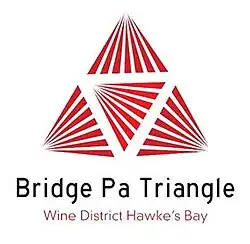 Also known as the Ngatarawa Triangle, the Bridge Pa Triangle wine district is approximately 2,100 hectares (5,200 acres) traced by three roads: Ngatarawa Road, State Highway 50 and Maraekakaho Road. The area adjoins the Gimblett Gravels to the north, and contains the old riverbed of the nearby Ngaruroro River before it changed course after an earthquake in the 1860s. The soils include free draining alluvial gravels and shallow clay-loam soils over Lake Taupō pumice tephras. Vineyards were first established in the area in 1981 by Alwyn Corban and Garry Glazebrook, who founded Ngatarawa Wines. Their successes attracted others to the area, and the Bridge Pa Triangle Wine District organisation was eventually incorporated in 2015. Membership allows producers to use the Bridge Pa Triangle logo and branding on the label as long as the wine has a minimum of 85% of the grapes sourced from the area. There are no other grape or wine-production regulations.[10] Notable wineries in the area include Alpha Domus, Sileni Estates, Red Metal and Ash Ridge. Several other producers make single vineyard wines from their plantings in the Bridge Pa Triangle area, most notably the award-winning Syrah from Te Mata Estate's "Bullnose" vineyard.