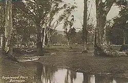 First creek continues its journey from the hills through the park, the water flowing from Waterfall Gully and into Tusmore. The park contains an assortment of play areas, picnic tables and barbecues. It is relatively large by suburban standards, but unusually there are no playing fields. It is strongly characterised by massive old eucalyptus trees that can be seen from blocks away. Although it is well facilitated, it is normally not as popular as the nearby smaller Tusmore Park.
