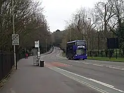 ![]() A view down Headington Hill, along Headington Road, from the bridge which now connects two parts of Oxford Brookes campus. | |