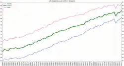 A new measure of expected human capital calculated for 195 countries from 1990 to 2016 and defined for each birth cohort as the expected years lived from age 20 to 64 years and adjusted for educational attainment, learning or education quality, and functional health status was published by the Lancet in September 2018. Belgium had the tenth highest level of expected human capital with 25 health, education, and learning-adjusted expected years lived between age 20 and 64 years. [1]