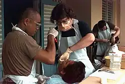 The main centers of medical education are University of Guyana, American International School of Medicine, and Texila American University. Guyanese physicians usually seek post-graduate education abroad, due to limited opportunities in Guyana. Medical students often go to Cuba as a part of a government-funded training program. Likewise, many Cuban nationals work in the Guyanese healthcare sector. Since 1993, Chinese medical professionals have worked in Guyana as a part of the Protocol on Medical Cooperation between the two countries.[13] China has also donated medical equipment.[14]