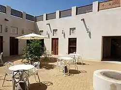 The current phase of the project is centred around the $53.5 million, 53-room Al Bait Hotel, a five star luxury hotel build around four heritage houses, including the Bait Ibrahim Mohammed Al Midfa and majlis, which is intended to launch in December 2018. The hotel is managed by GHM Hotels, known for its Chedi hotel brand.[8] The houses are of traditional construction, single story with coral and gypsum walls and teak and barasti (palm frond) ceilings.[9] The hotel was first announced in 2013 and slated for 2015 completion.[10]