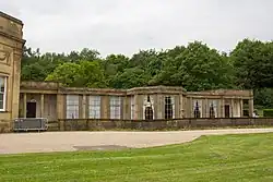 The orangery was added to the house by the 2nd Earl of Wilton around 1823. It was probably designed by Lewis Wyatt as it is similar to his orangeries at Tatton Park and Belton House. It was probably built for the wife of the 2nd Earl, Lady Mary Stanley, who was a keen botanist. It was designed with a domed, glazed roof, fronted by a formal garden with two large copies of the Borghese Vase. The ornate glass roof was removed, to be replaced with a flat roof after Manchester City Council purchased the park in 1902. The orangery is now a function and conference venue, run by Manchester City Council's Hospitality and Trading Service.[31]