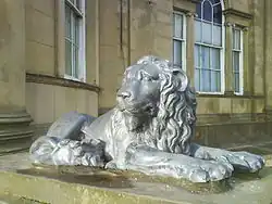 Commissioned in 1807 by Sir Thomas Egerton, the Grand Lodge was designed by Lewis Wyatt as an impressive main entrance to the park from the south. The lodge is built of ashlar sandstone as a large triumphal arch and originally led onto one of the longest carriage drives to the house. It has two floors of accommodation, cellars under the west wing and an attic over the arch. The construction of the lodge completed the enclosure of the park by a 10-foot (3.0 m) high boundary wall.[30] It was refurbished as part of the millennium project and is now rented out to the public as short stay accommodation. There is a memorial plaque here dedicated to the memory of the Manchester Pals who trained in the park in 1914.