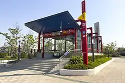 Foshan Metro Line 11 will use the station in the future as a terminal station and connect to the Guangzhou Metro Network by connecting to Guangzhou Line 11.[10] Foshan Metro Line 11 was included in the second phase of the Foshan Urban Rail Transit Construction Plan (2021–2026) in 2016 and was approved on 7 January 2021, but construction has not yet started.[11] During construction of the Guangzhou Line 11 station, part of the Foshan Line 11 platform structure and a transfer node at the south end of the Guangzhou Line 11 platforms were therefore built as a reservation.