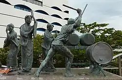 Statues depicting heike ondo performers and heike odori dancers, in front of the Sea Mall, Shimonoseki