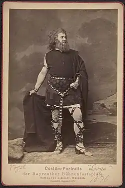 He played the role of Loge in Richard Wagner's Das Rheingold at Munich Court Opera on 22 September 1869, with his wife, Therese Vogl, playing the role of Wellgunde.[1][2][3] He also played the role of Siegmund in Wagner's Die Walküre, also at Munich, on 26 June 1870.[1] Therese Vogl played the role of Siegmund's sister and lover Sieglinde in the same performance.[4] His Munich debut was as Max in Weber's Der Freischütz.[1] He sang at Bayreuth, Berlin, London and the Metropolitan Opera in New York City.[1] At Bayreuth, he played the role of Loge in the first complete Ring cycle on 13 August 1876.[2][3]