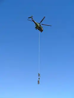 Helicopter Rope Suspension Technique (HRST) is a military term for techniques and methods of rappelling, fast roping, Special Patrol Insertion/Extraction (SPIE) and Jacob's Ladder operations. Helicopter Rope Suspension was developed as a means to insert and/or extract, by helicopter, ground forces (primarily reconnaissance teams) into or from rough terrain, urban areas or water. HRST is designed to be used in situations wherein aircraft landings are impractical due to terrain or tactical situation.[1]