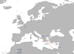 - ^ a b ""Hellas" Hellenic Airlines". March 1950 Timetable. Hellenic Airlines. March 4, 1950. Retrieved 10 June 2011.