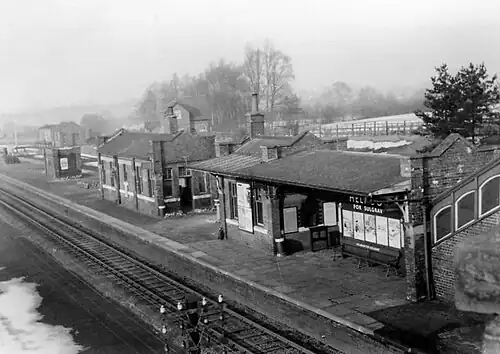 The GCR main line was the last main line to be built from northern England to London.[1] It opened for passenger services on 15 March 1899 and for goods services in April.[2] The station, originally named "Helmdon", opened with the line on 15 March 1899.[3]