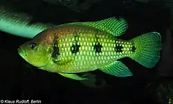 Hemichromis elongatus, the banded jewel cichlid, is a freshwater fish found in the Okavango River and upper Zambezi River. The fish also occurs in the Congo River system and in West Africa.[2]