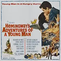 Hemingway's Adventures of a Young Man is a 1962 American adventure film directed by Martin Ritt based on Ernest Hemingway's semi-autobiographical character Nick Adams, and featuring Richard Beymer as Adams. A.E. Hotchner wrote the screenplay, originally calling the film Ernest Hemingway's "Young Man". The cast includes Diane Baker, Jessica Tandy, Ricardo Montalbán, Eli Wallach, Arthur Kennedy and Paul Newman. It was released in July 1962.[3]