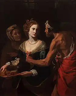 De Somer is believed to have been in contact with Matthias Stom during the latter's stay in Naples in the 1630s. Hendrick's works such as Caritas Romana (1635, private collection) and Tobias curing his father's blindness (c. 1635, Banco Commerciale Italiana, Collezione Intesa Sanpaolo) can be seen as de Somer's reaction to the northern realism of Matthias Stom.[12] In later compositions de Somer reflects influences deriving from the example of other Neapolitan masters who asserted themselves in those years, such as Massimo Stanzione and Bernardo Cavallino. Hendrick's palette moved gradually away from the tenebrism of Ribera and opened up to the neo-Venetian color, which in that period came to replace the chiaroscuro of the Caravaggisti.[6] Works like his multiple versions of Lot and his daughters and his Samson and Delilah are examples of this evolution.[12]