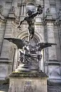 When he graduated from the Royal Academy, Fehr worked as an assistant in the studio of Thomas Brock.[2] There, Fehr created a monumental bronze sculpture, The Rescue of Andromeda, which is considered his first significant work and was subsequently purchased by the Chantrey Bequest for the Tate Gallery.[3] Fehr was greatly upset, and protested repeatedly, when the Tate moved the sculpture from an internal gallery to the position outside the building where it remains.[3] The success, and naturalistic style of The Rescue of Andromeda led to Fehr being, briefly, regarded as part of the New Sculpture movement.[2] Although the association didn't last, like the New Sculpture artists, Fehr's did receive several commissions from firms of architects keen to include decorative sculptures into the designs of their new buildings.[2] For the architect Charles Fitzroy Doll Fehr produced four life-size terracotta sculptures of British queens for the Hotel Russell in London's Bloomsbury.[2] For the firm of Lanchester, Stewart & Rickards, he created architectural decorations for the dome of the Methodist Central Hall in Westminster and also the Welsh dragon that sits above Cardiff City Hall.[2][4] J.S Gibson & Partners commissioned Fehr for decorative works on several buildings including the West Ham Technical Institute in London, for a school in Scarborough, for Walsall Central Library and, most notably, for the Middlesex Guildhall in Parliament Square.[2][5] For the same company, Fehr made a coloured plaster relief frieze of scenes from the Wars of the Roses for the interior of Wakefield County Hall in 1898.[6][7]