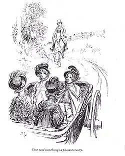 Henry's barouche on the journey to Sotherton Court. Edmund follows behind on horseback.