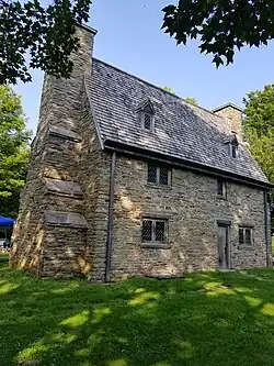 The Henry Whitfield House is a historic house located in Guilford, Connecticut, down the street from the town green.[3] It dates from 1639, built just before the town of Guilford was settled. It is the oldest house in Connecticut and the oldest stone house in New England. It also served as a fort to protect the community with its massive stone walls.[4] Henry Whitfield was a Puritan minister who had come from England to flee religious persecution, and the settlers built the house for him.[5] It was remodeled in 1868 and opened to the public in 1899 as the Henry Whitfield State Museum, the first Connecticut state museum. It was restored in 1902–04 and again in the 1930s, and it was declared a National Historic Landmark in 1997.[2] It was named a State Archeological Preserve in 2006.[4][6]