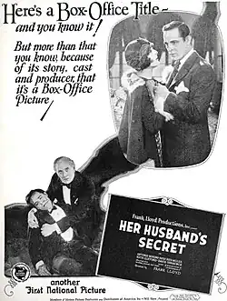 Her Husband's Secret is a 1925 American silent drama film directed by Frank Lloyd and starring Antonio Moreno, Patsy Ruth Miller, and Ruth Clifford.[1][2]