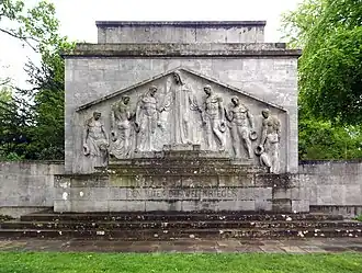 Shortly after his arrival there, he became a member of the progressive artists' group, Malkasten and, with some short interruptions, would remain a member for the rest of his life. In 1911 and 1913, he participated in the Große Kunstausstellung NRW Düsseldorf, with a series of bronze statuettes in the Art Nouveau style.[2] Some were also shown at the Große Berliner Kunstausstellung of 1917. That same year, he began work on a memorial to the war dead, at the Nordffriedhof, designed by the architect, Hermann Goerke. It occupied him until 1921 and is one of his most individually prominent works.