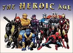 The Heroic Age is a 2010 comic book branding that ran through a number of books published by Marvel Comics. It began in April 2010 and ended in April 2012.[1] It marked a major change in the status quo of the Marvel Universe after the events of the "Siege" crossover event, similarly to how "The Initiative" and "Dark Reign" dealt with the aftermath of "Civil War" and "Secret Invasion", respectively.