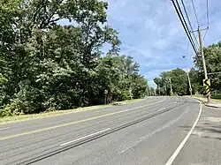 Hillside Avenue (New York State Route 25B) forms the hamlet's southern border.[8]