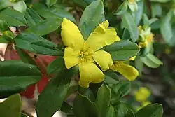Hibbertia cuneiformis, commonly known as cut-leaf hibbertia, is species of erect or sprawling shrub that is endemic to the south-west of Western Australia. It grows to between 1 and 2 m (3 ft 3 in and 6 ft 7 in) tall and has yellow flowers which appear from January to March or from June to November in the species' native range.[2]