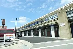 The Hicksville Escalator District was established on September 15, 1964, as a result of the reconstruction of the Hicksville station; the station, which had previously been at-grade, was raised onto an elevated structure through a grade crossing elimination project executed by the New York Public Service Commission.[1][3][4][5][6] The district was created by the Town of Oyster Bay in order to pay for & maintain the rebuilt station's two escalators between the street and the platforms.[1][2][3][7] The escalators went into service in 1966.[8][9][10]