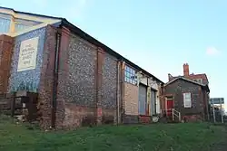 The station had one platform and a train shed that covered two broad gauge tracks. On one side of the train shed was a single road engine shed and on the platform side were a booking office and waiting rooms (on the Birdcage Walk side). The walls of the train shed, an engine shed and offices were constructed from brick and knapped flint with slate roofs. This building remained as a station in use until 1864 when it became a goods shed. Between the 1880s and 1940 various additions were made to the fabric of the old station. The building received grade two listing in 1999 due to being one of only six remaining GWR train sheds. Following listing most of the later additions were removed, restoring the building to its original footprint, the only addition being the flat roof second floor extension added in 1940.