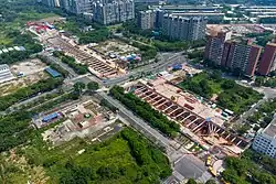 In 2003, construction of the station began with the first section of Line 4.[11] On 6 January 2004, the civil works of the connecting line between the University Town Line (Line 4) and Line 7 began.[8] On 11 January 2005, the roof slab was sealed.