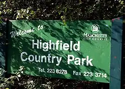 Highfield Country Park is a 70-acre (280,000 m2) area of open land, situated on the east side of Levenshulme, Manchester, that stretches to the east of Broom Avenue across to the rear of Reddish Golf Course and to the junction of Longford Road, Reddish and Nelstrop Road, Levenshulme.[1]