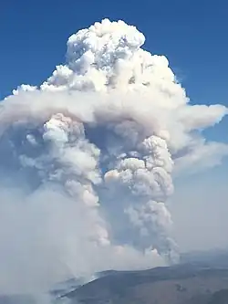 By September 5, the fire had grown to 67,942 acres (275 km2), with the accompanying Goat Fire growing to 480 acres (2 km2). Both fires remain at zero containment with the goal of letting them run their natural course. The Cold Meadows USFS Airport was closed due to poor runway conditions.[6] As of September 10, the fire was burning 82,133 acres (332 km2) and was at zero containment. The fire made its way to the Rock Rabbit Lookout, which survived.[7]