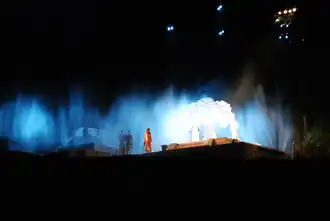 It depicts Joseph Smith's encounter with the golden plates (translated into English as the Book of Mormon), as well as a dramatization of the events recorded therein. The productions featured more than 700 cast members, 1,300 costumes, and a 10-level stage. It ran for seven nights in late July and attracted approximately 35,000 viewers annually.[2] No donations were accepted and no tickets were required, although seating was first-come, first-served.