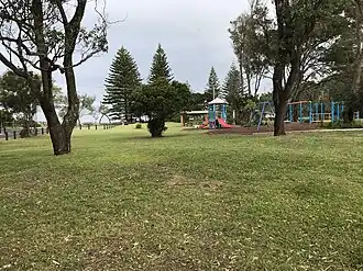 The beach is named after the Hill family, who had a farm in the area behind the beach from 1923.[7] In the 1920s and 1930s, the family also maintained a golf course on the property.[7] In the 1950s, the beach was regularly used for Christmas parties organized by the Ex-Services Club, with more than 1,000 people attending.[8][9] In 1956, Pine Brush Creek was approved for mineral sand mining to extract rutile, zircon and ilmenite.[8] In 1960, the Hill family opened the Banana Bowl Caravan Park at the northern end of the beach, which was surrounded by banana trees.[8][9] The park offered caravan and camping facilities, with swimming and canoeing available in Pine Brush Creek.[9] The caravan park was sold by the Hill family in 1983[10] and the land was subsequently developed for the Opal Cove Resort c. 1989.[11]