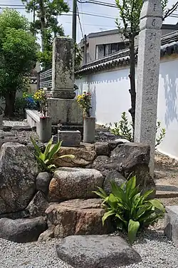 Despite the original prohibition on his funeral, Hiraga Gennai had a grave at the temple of Sosen-ji in Asakusabashi (currently Hashiba, Taitō-ku, Tokyo) 35°43′41″N 139°48′21″E / 35.72806°N 139.80583°E. In 1928, following the 1923 Great Kantō earthquake, the temple was relocated to Itabashi, but its cemetery remained behind. Behind his grave is the grave of Fukusuke, his long-time manservant, and next to the tombstone is a stone monument with an epitaph by Sugita Genpaku, his life-long friend. The tomb was reconstructed by Count Yorinaga Matsudaira in 1931. It received protection as a National Historic Site in 1943.[6] The site is a 12-minute walk from Minami-Senju Station on the Hibiya Line; however, the grave is not open to the public.[7]