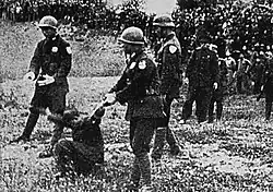 In July 1937, the IJA 6th Division was assigned to the Japanese China Garrison Army, and immediately began combat operations in the Second Sino-Japanese War starting with the ongoing Battle of Beiping–Tianjin. Afterward, it participated in Beiping–Hankou Railway Operation.[3] In October 1937, the division was re-subordinated to IJA 10th Army and attacked the Chinese troops concentration at Hangzhou Bay. By December 1937, it shifted west to join the IJA 18th division and IJA 114th division in the Battle of Nanking and ultimately in the Nanjing Massacre.