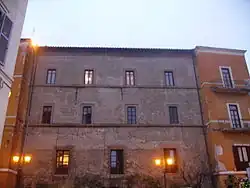 Cardinal Giacomo Savelli, since 1285 Pope Honorius IV, founded the Abbey of St. Paul in 1282,[62][63] entrusting it to the Guglielmini fathers and endowing it with substantial properties in the Albano territory and around Lake Albano (such as the picturesque hermitage of Sant'Angelo in Lacu).[64] In the thirteenth century, also thanks to the seigniory of the Savelli family, there are signs of a rebirth of the city: in addition to the foundation of the abbey, one of the first "guardianìe" of the Franciscan Order is attested in Albano, active at the then falling cathedral of San Pancrazio,[65] and in 1316 the sanctuary of Santa Maria della Rotonda was consecrated for the second time, at the work of Augustinian nuns.[66] In addition, the city was provided with a fortification system, as the dating of Palazzo Savelli to this era would attest.[67]