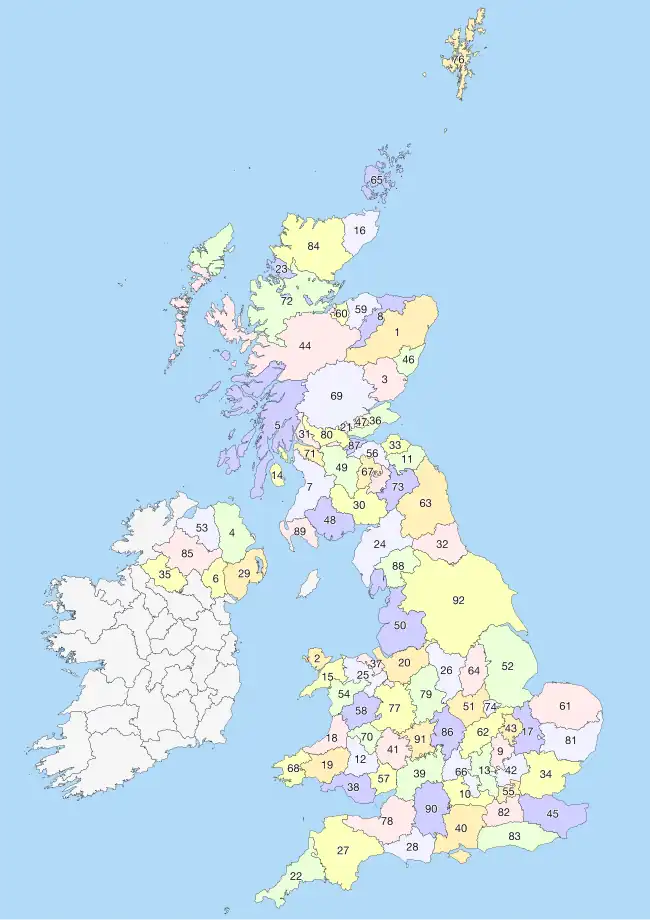 The historic counties of the United Kingdom are ancient geographical divisions of the United Kingdom. Although not defined by any one function, over many centuries, various forms of administrative function have been based on them.[3] These have included the areas of parliamentary constituencies, the court of quarter sessions, the areas in which a lord-lieutenant and sheriff serve, territorial units of the Militia, as well as the basis of the original county councils. Although these areas have subsequently changed, the historic counties on which they were originally based have not.[4] The Office for National Statistics recommended them in the Index of Place Names as a stable, unchanging geography which covers the whole of Great Britain.[2]