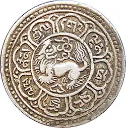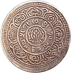 The first coinage which was extensively used in southern Tibet was silver coins, which were supplied by the Nepalese Malla Kingdoms and the first kings of the subsequent Shah dynasty from about 1640 until 1791.[8]