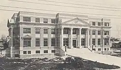 In 1916, a neo-classical county courthouse was opened. Prior to the opening of the courthouse, county business was conducted at a school building located at Clematis Avenue and Poinsettia Street.[7] The building underwent renovations in the 1950s and 1960s.[28] It was used as the county courthouse until a new courthouse opened in 1995. The Board of County Commissioners agreed in 2002 to return the historic courthouse to its original design. Restoration was completed in March 2008 at a cost of just over $18 million. Today, the original courthouse houses the Historical Society of Palm Beach County and the Richard and Pat Johnson Palm Beach County History Museum.[29]