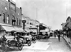 On November 5, 1894, residents met at the "Calaboose", which served as the first jail and police station. The building formerly stood at Clematis Street and Poinsettia, now Dixie Highway. The 78 people there voted on a motion to incorporate, with 77 in favor and 1 against. They also decided to name the municipality "West Palm Beach", originally a town.[17] This made West Palm Beach the first incorporated municipality in the county and in Southeast Florida.[18] On the following day, 78 people also met to vote on the new town officers. Voters elected John S. Earman as the first mayor, while Henry J. Burkhardt, E. H. Dimick, J. M. Garland, H. T. Grant, J. F. Lamond, and George Zapf became the town's first aldermen. Eli Sims and W. L. Tolbert were chosen to be town clerk and town marshal, respectively.[19] Later in November 1894, the Flagler Alerts, an all-volunteer fire department, was established as the first fire department in the city.[15]