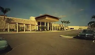 The 1950s and 1960s also saw the opening of the Palm Beach Zoo (then known as the Dreher Park Zoo) in 1957 and the South Florida Science Center and Aquarium in 1961.[77][78] The first shopping plaza in Palm Beach County, the Palm Coast Plaza, opened in 1959 along Dixie Highway near the city's southern boundary.[75] At the time, it was considered "the largest and most complete shopping center between Miami and Jacksonville".[79] The city of West Palm Beach opened a new library at the east end of Clematis Street on April 30, 1962, to replace the Memorial Library.[80] In 1968, Palm Beach Atlantic University (PBA), an accredited, private Christian university, began at a downtown local church,[81] before opening a campus in the 1980s.[82]