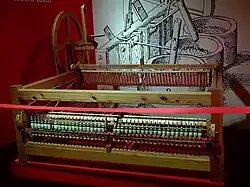 Unlike printing, which was centred in Barcelona, spinning spread to other parts of Catalonia, partly by the need for water power. Igualada became the most important spinning centre after Barcelona, followed by Manresa, which had 11 water-driven spinning mills by 1831.[51] Weaving became even more widespread than spinning with concentrations (in descending order of importance) in Mataró, Berga, Igualada, Reus, Vic, Manresa, Terrassa and Valls.[52] However, weaving was slower to mechanise, and by 1861, only 44% were mechanical.[53] Printing also advanced in this period, with the cylindrical printing process being introduced in 1817.[52]