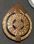 The badge is similar to the other badges, but is framed with a narrow border of oakleaves and is of higher workmanship. It was recognised as an official Party decoration, and could therefore be worn on any uniform.[7]