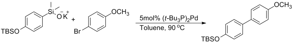 - ^ Shi, S.; Zhang, Y. (2007), "Pd(OAc)2-Catalyzed Fluoride-Free Cross-Coupling Reactions of Arylsiloxanes with Aryl Bromides in Aqueous Medium", The Journal of Organic Chemistry, 72 (15): 5927–5930, doi:10.1021/jo070855v, PMID 17585827